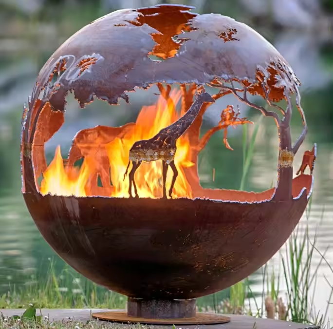 Add a sculptural statement to your outdoor space with this elegant leaf-shaped fire pit, crafted from durable Corten steel. Inspired by the natural beauty of a fallen leaf, this fire feature combines organic form with industrial strength, offering a unique blend of art and function.