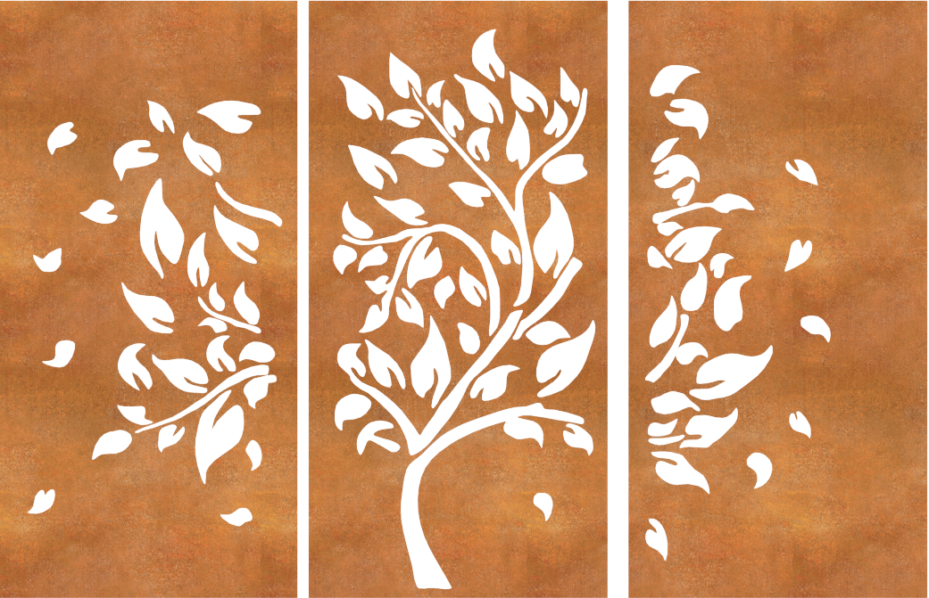 Bring refined nature-inspired beauty to your space with this set of three corten steel laser light boxes, each showcasing a unique and elegant tree design. Whether displayed together as a cohesive statement or placed individually throughout your landscape or home, this trio adds warmth, texture, and artistic charm.