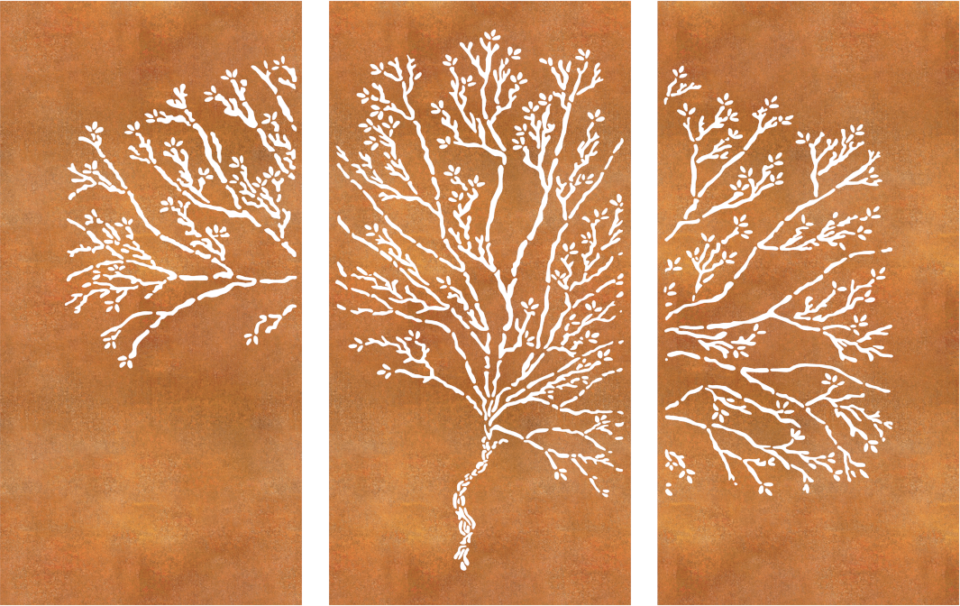 Each panel is crafted from premium corten steel, designed to develop a warm, rusted patina over time that enhances the natural aesthetic. Precision laser-cutting brings each bird and branch to life, while soft integrated lighting casts a tranquil glow, creating stunning shadows and a peaceful atmosphere.