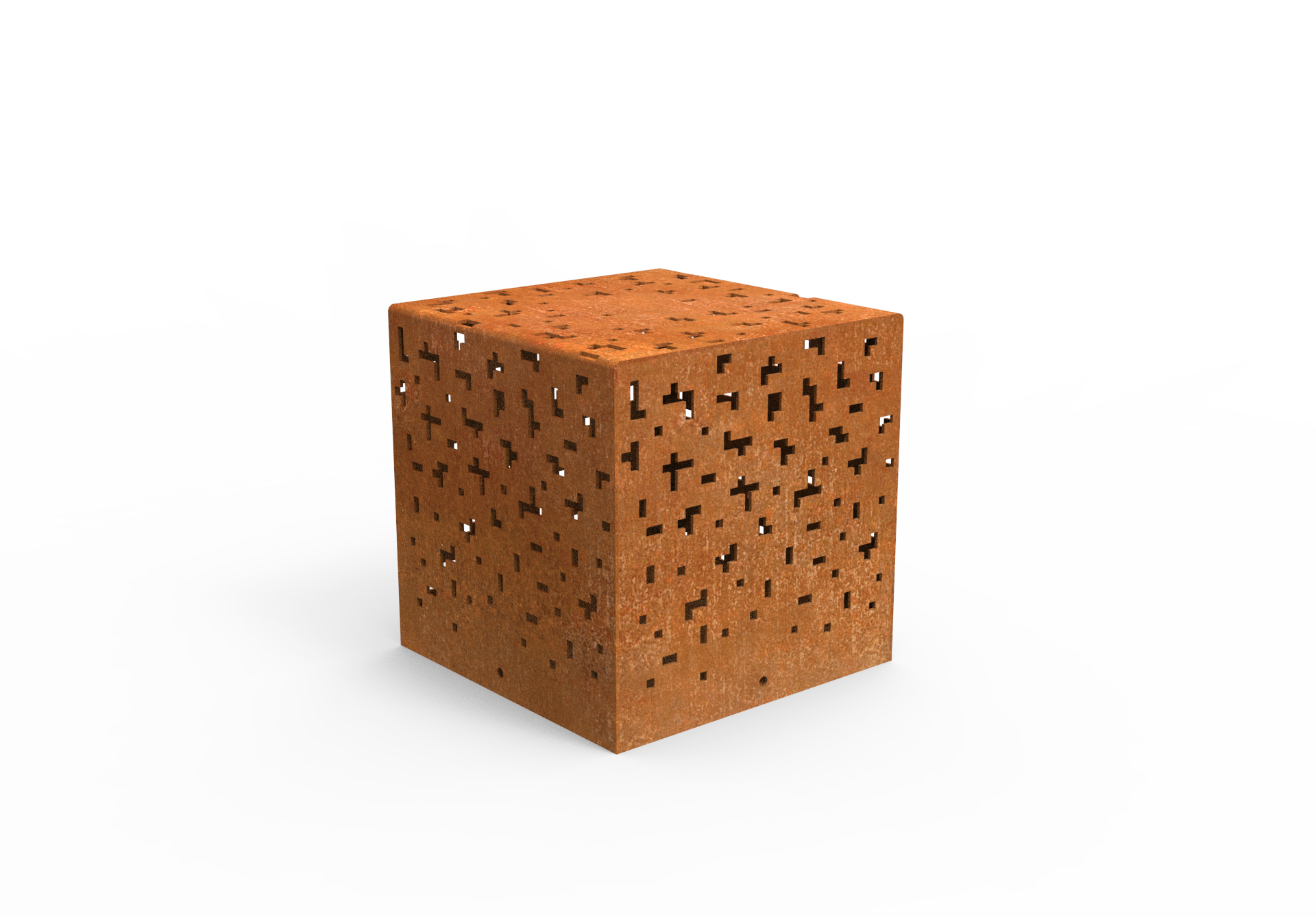 Crafted from durable corten steel, the light box naturally develops a rich, rustic patina over time, giving it a one-of-a-kind, weathered look that complements both contemporary and organic spaces. The special design is laser-cut with precision, allowing light to filter through and cast beautiful patterns and shadows, creating an inviting and atmospheric glow.