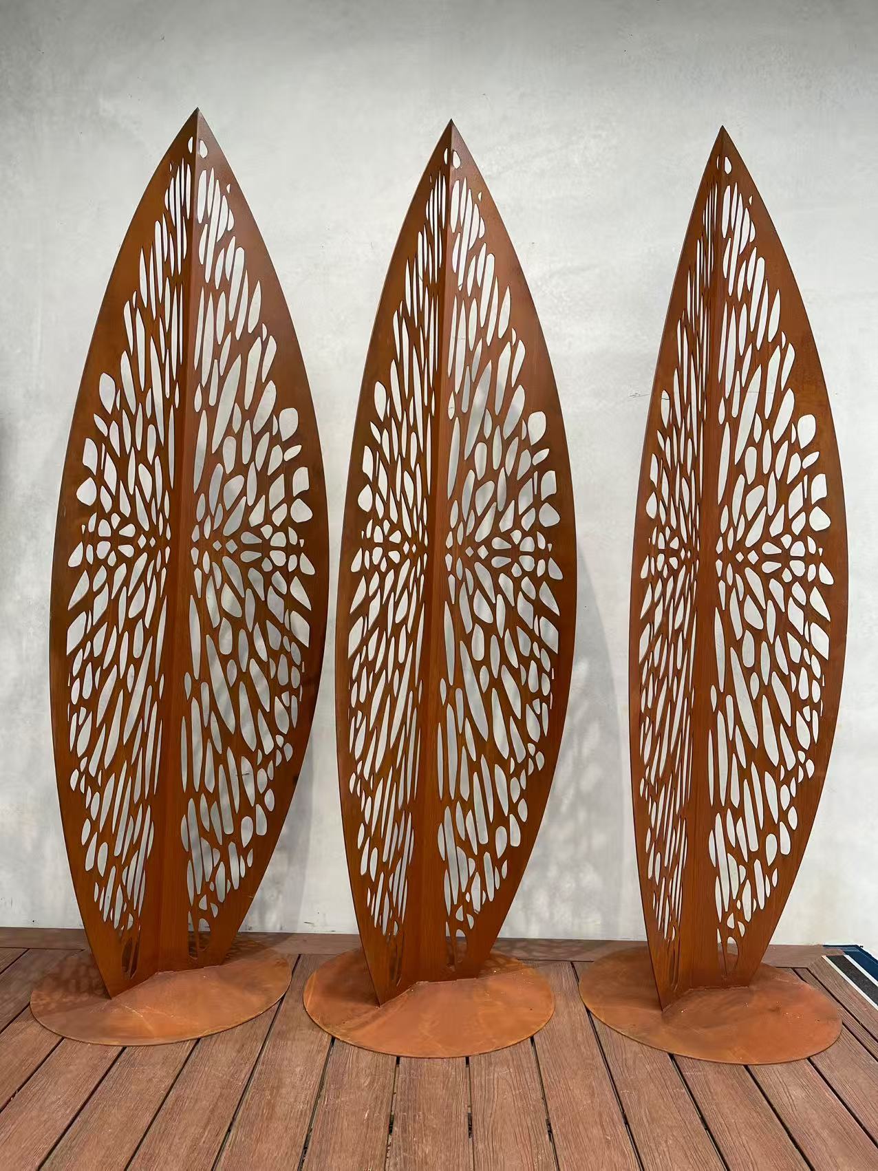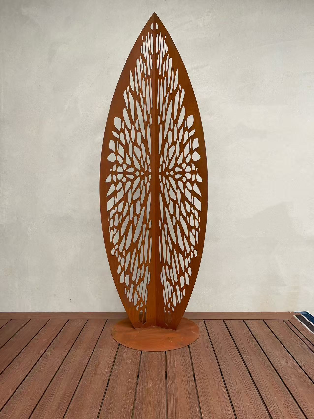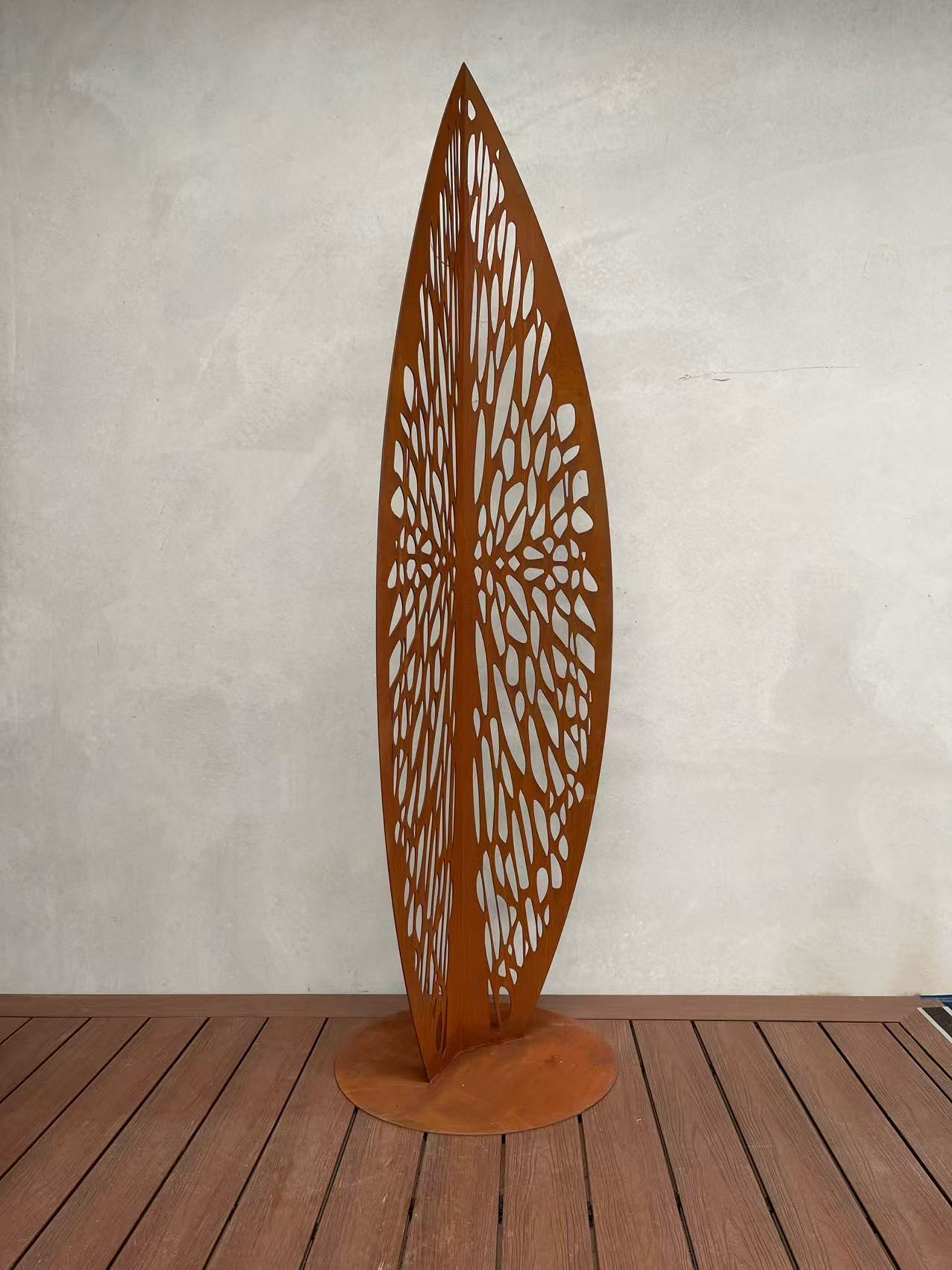 Bring a bold artistic presence to your landscape with this striking large leaf-shaped sculpture, expertly crafted from Corten steel. With its flowing, organic lines and natural silhouette, this sculptural piece captures the delicate beauty of a leaf in an enduring, architectural form.